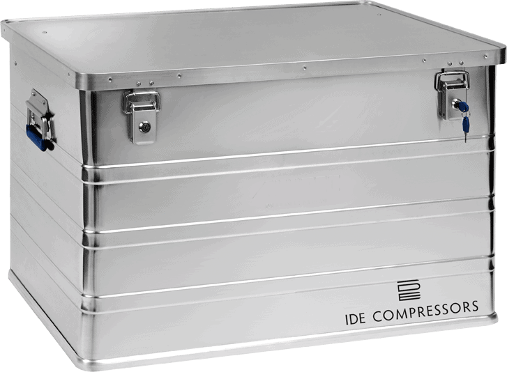 Extrem leichte, stabile Alubox zum sicheren Tarnsport unserer Kompressorenmodelle FUN2 und NAUTIC 150jeweils in der Elektroversion.